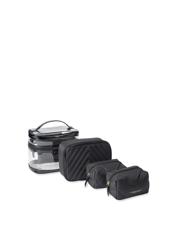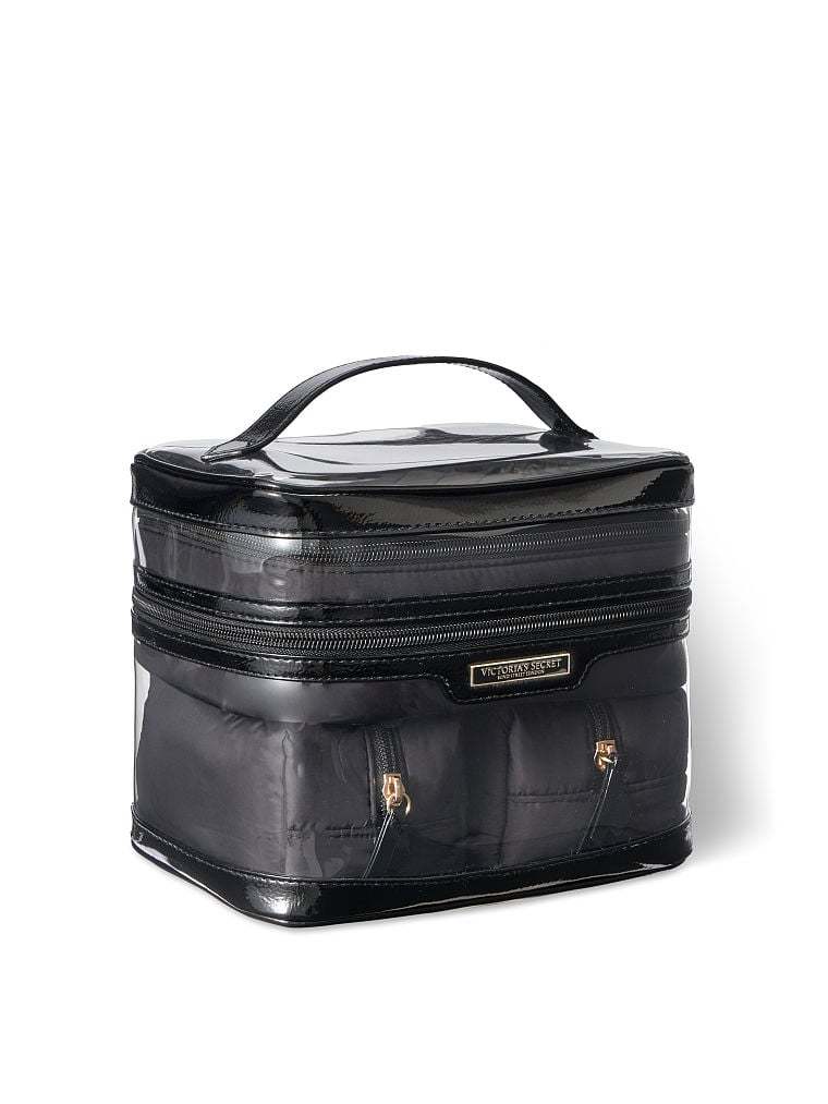 - Both interior pouches fit: All makeup essentials, brushes and full-size perfumes
