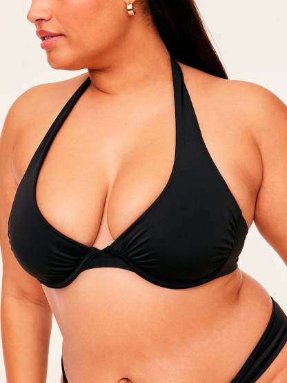 It’s all in the details: Ruched cups add a romantic finish to this classic style. Adjustable cross-back straps allow you to find your perfect fit. Pair it with the Bobbie Bikini or Hi-Waist Swim Bottom.