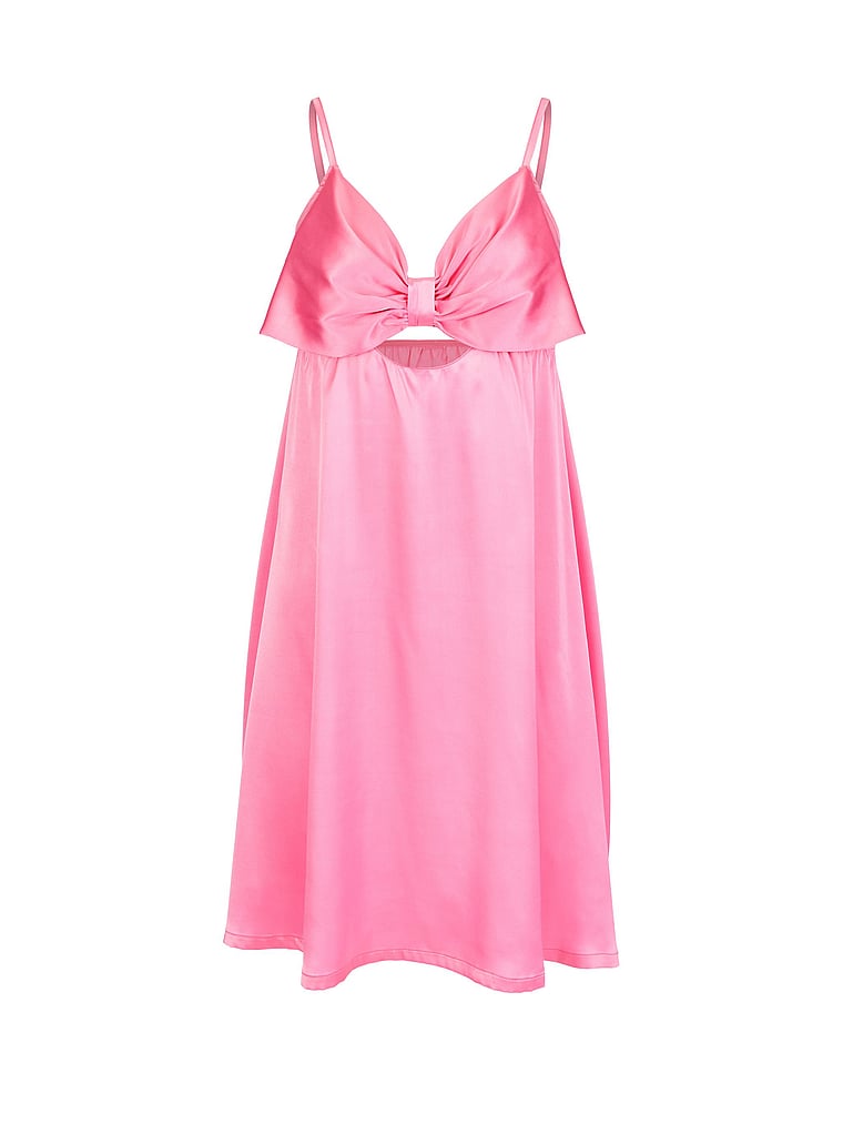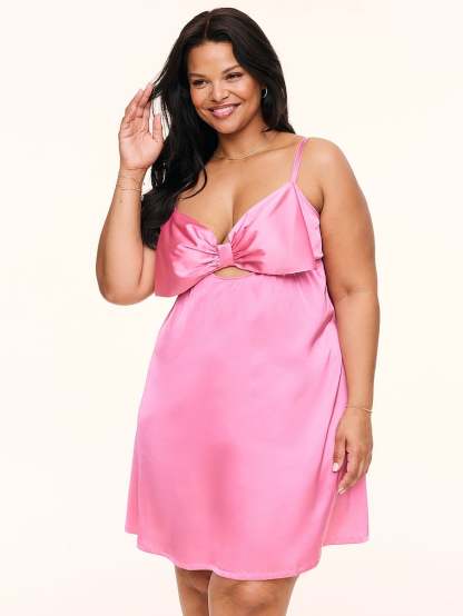 Feel like a present! This holiday-ready slip features bow-like cups and satin fabric flowing down for the perfect babydoll fit — it also has adjustable straps!
