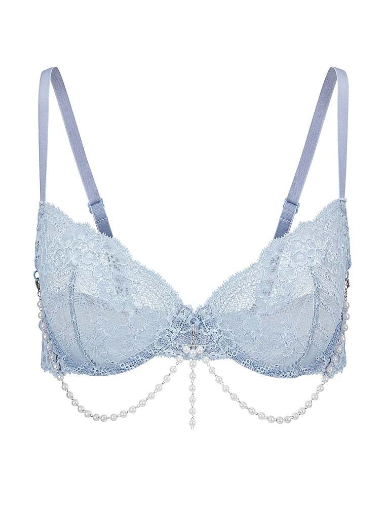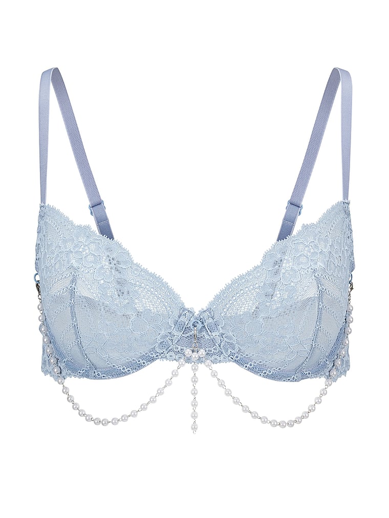 Underwired lace cups and removable pearl strands draped along the underband give this unlined Bra a fun look. Fully adjustable straps and a hook and eye closure help you find the perfect fit.