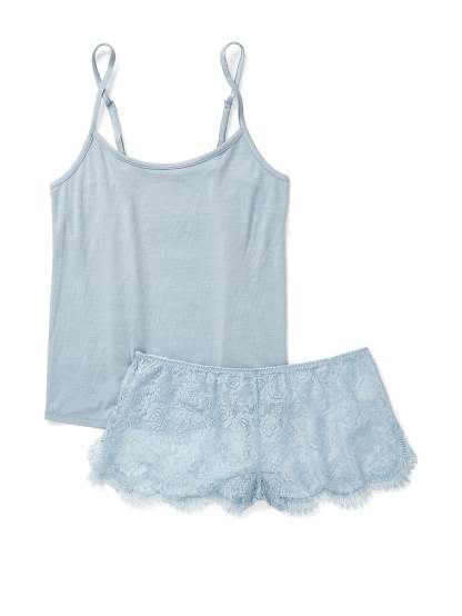 Sweet and soft in the front, luxe and lacy in the back, this easy set is perfect for lounging and sleeping all summer—and beyond.
