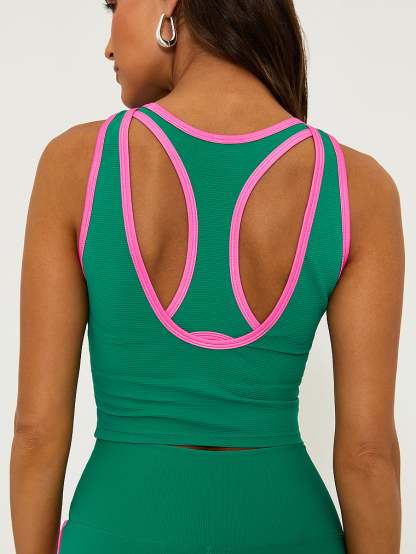 Running miles (or just running errands) never looked so good. This sporty Top features a flattering scoop neck and chic cross-back details. Plus, a built-in shelf Bra with removable cups means you’ll feel supported, no matter what you’re doing. Pair with the Nola Bike Shorts for a coordinated look.