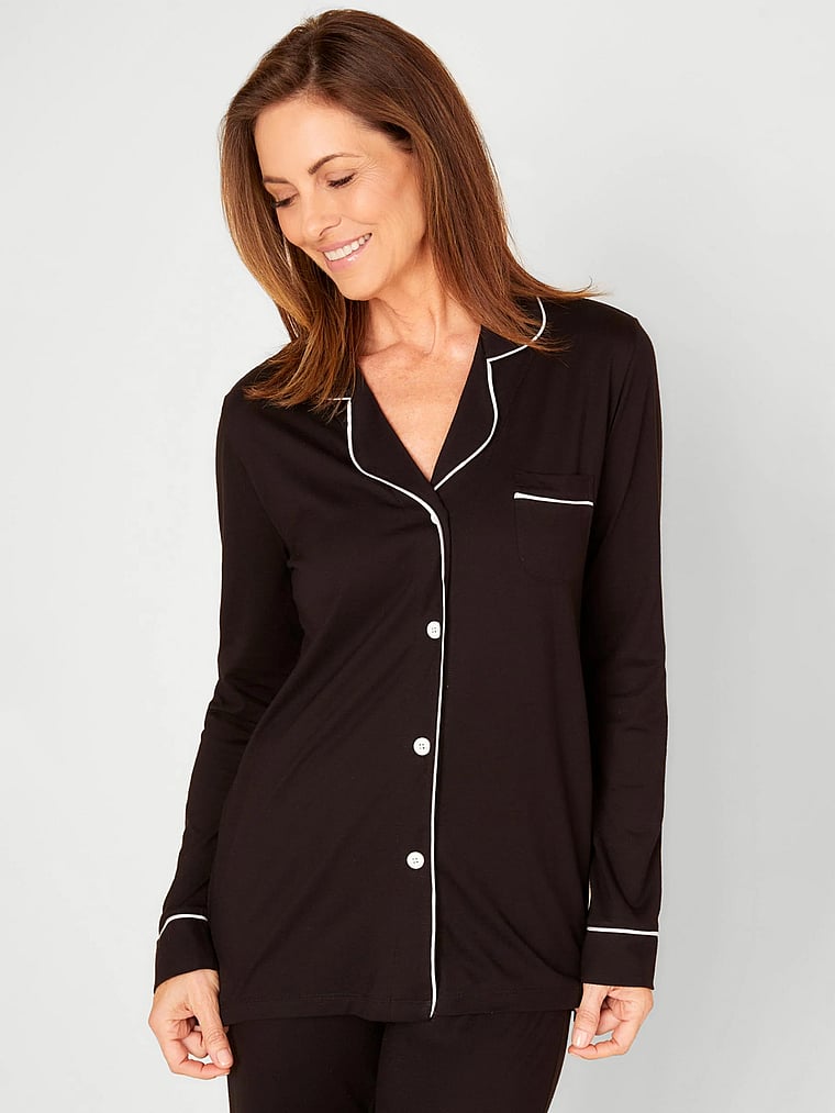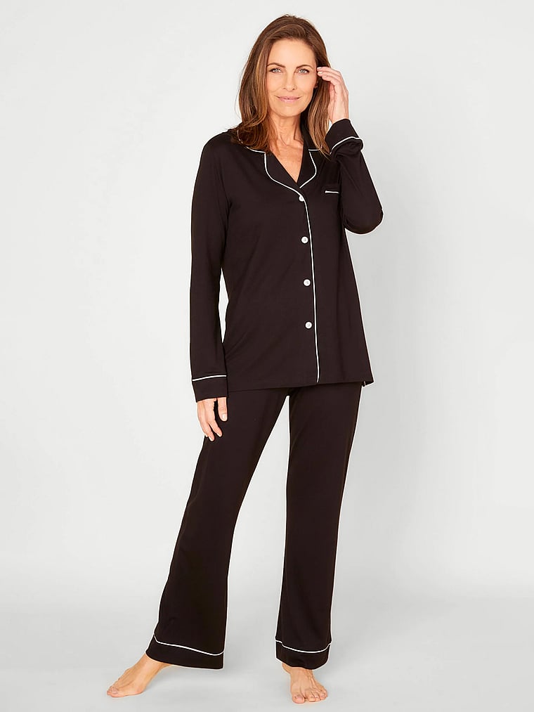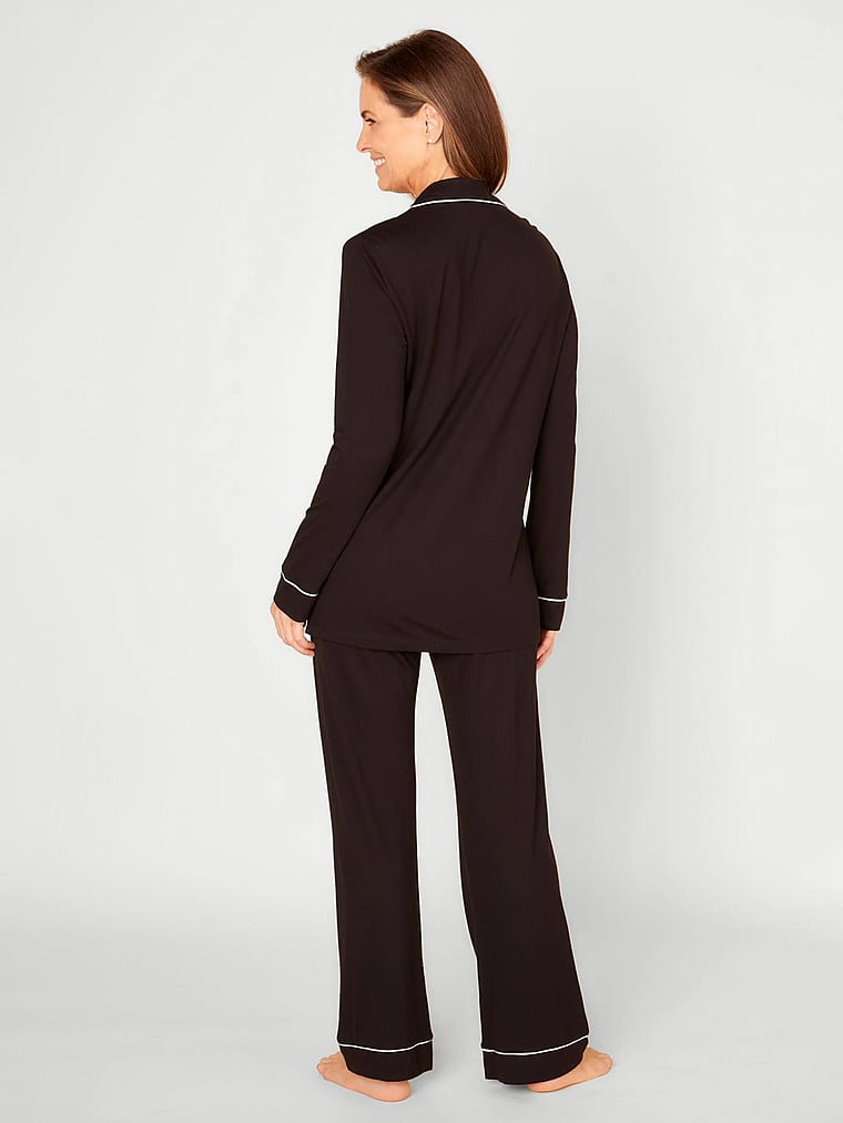 Crafted from a supersoft, Peruvian Pima cotton-modal blend, this luxurious two-piece set is a timeless addition to your PJ collection. A contrasting piped-seam detail adds a chic finish.