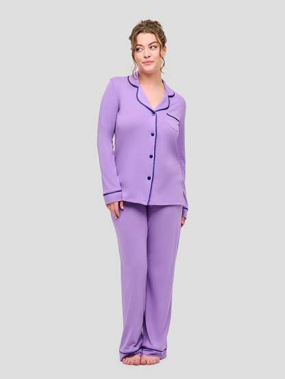 Crafted from a supersoft, Peruvian Pima cotton-modal blend, this luxurious two-piece set is a timeless addition to your PJ collection. A contrasting piped-seam detail adds a chic finish.