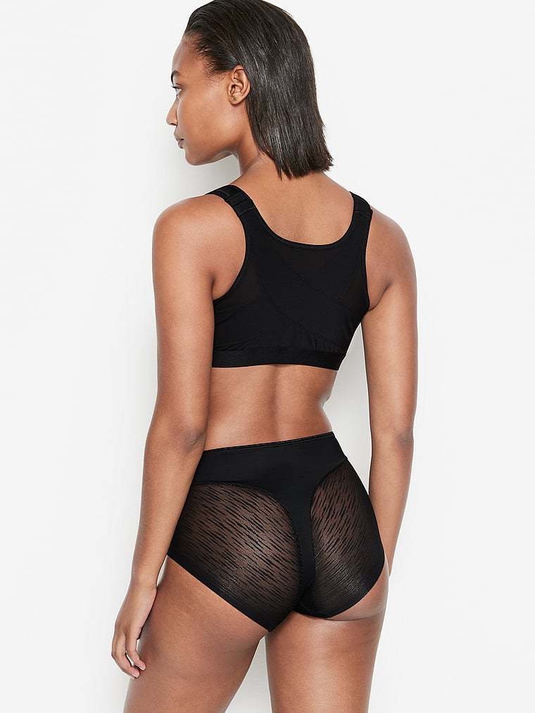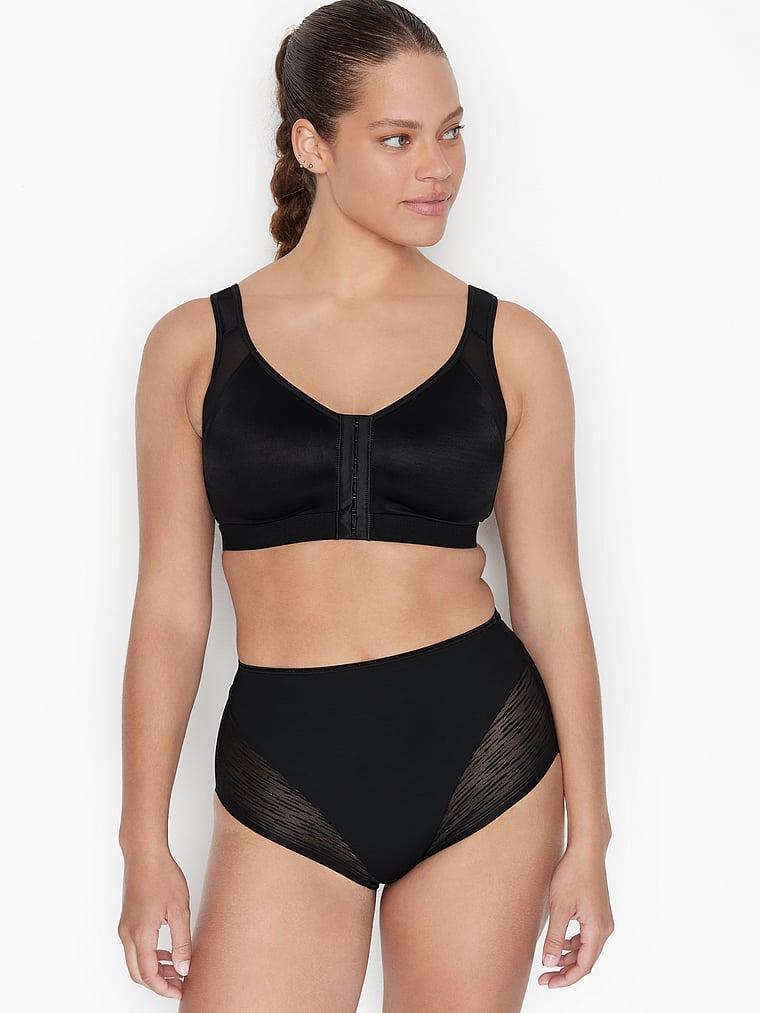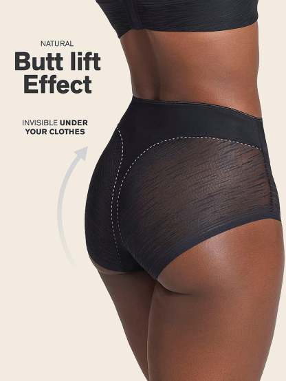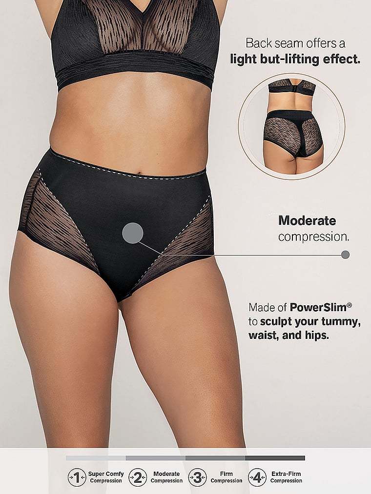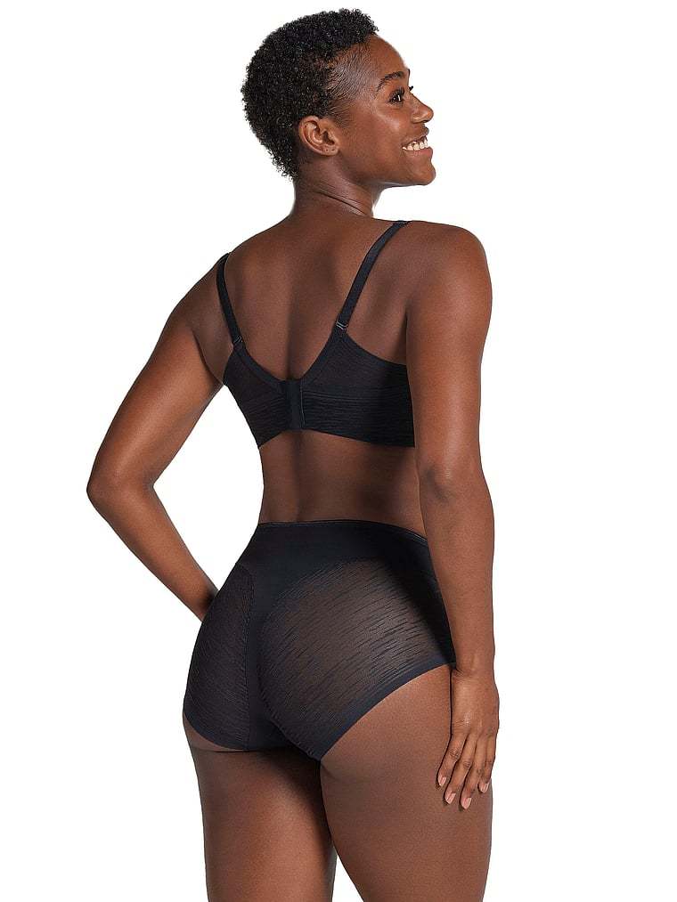 This brilliant shaper panty combines sexy style and shaping power. It’s made of DuraFit® for moderate compression, flattening the lower tummy. Sheer SmartLace® in the bottom offers a cute look while reducing the appearance of cellulite. The thong effect in the back offers a light butt-lifting effect. It hits right at the belly button for a streamlining effect, and it has laser-cut leg bands to go invisible under clothes. By Leonisa.