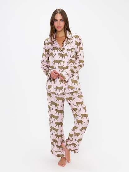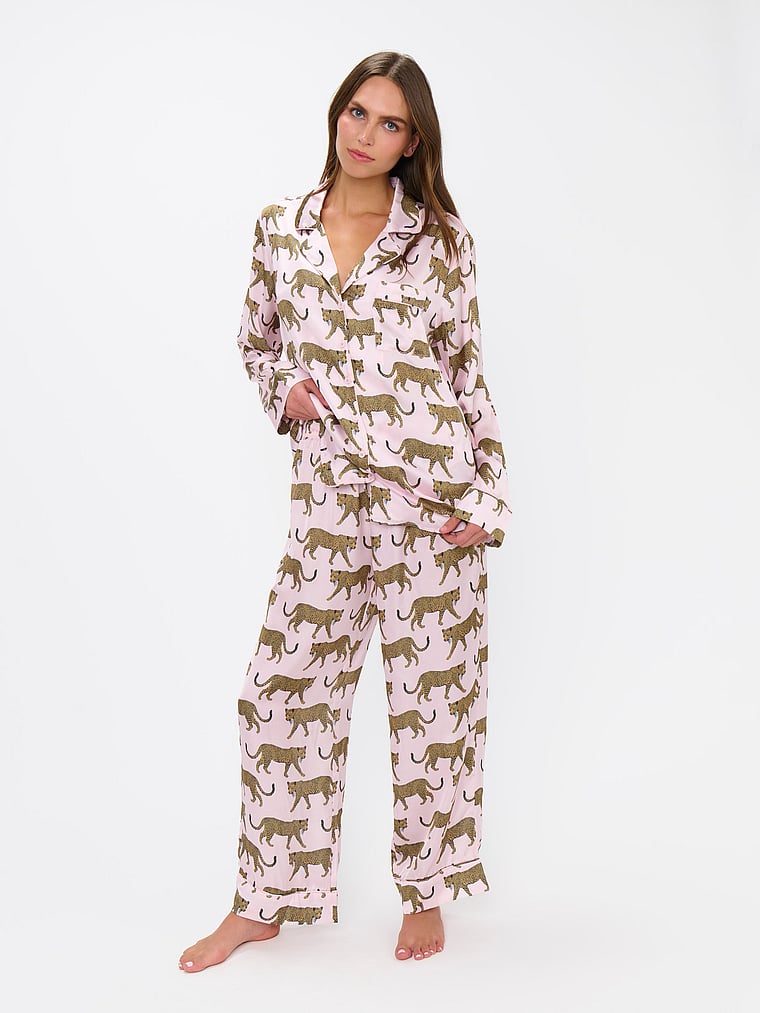 Sleep tight (and in luxury) with this silky Pajama set that boasts a timeless silhouette and a relaxed fit.