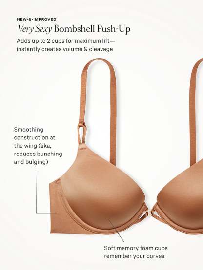 The major lift you're looking for is better than ever with a side-smoothing fit and ultra-soft memory foam that adds up to two cup sizes in an instant. Our beloved Bombshell Push-Up —made for the bold look you love—features our signature crisscross detail with golden logo hardware front and center.
