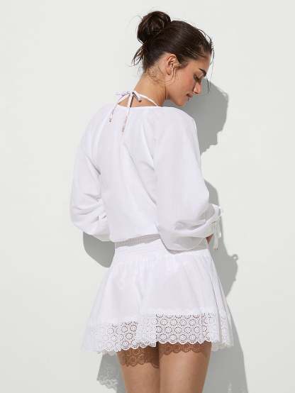 - Tie closure at sleeve opening