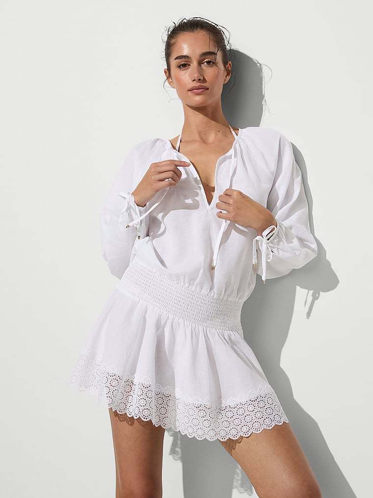 Victoria's Secret Swim Beachwear Linen Lace-Trim Dress